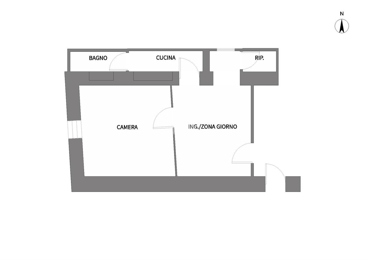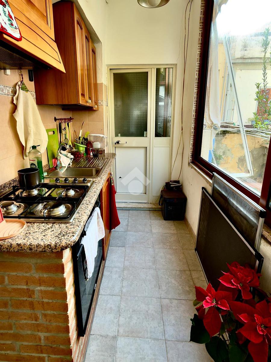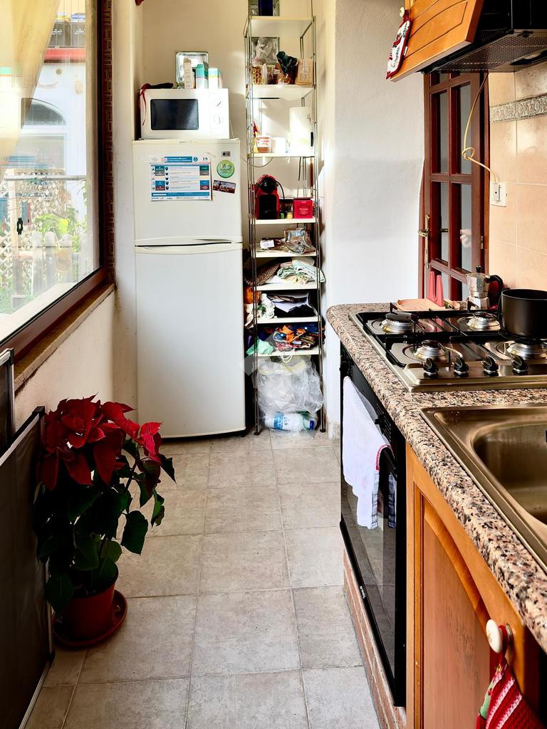 La cucina e il bagno sono adiacenti e l'appartamento è arricchito da un comodo ripostiglio.