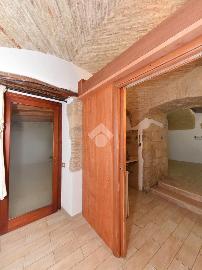 L'ingresso della palazzina è contraddistinto da una classica pavimentazione in marmo e dagli archi in pietra, caratteristici del centro storico e presenti anche all'interno dell'immobile.