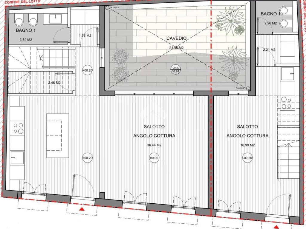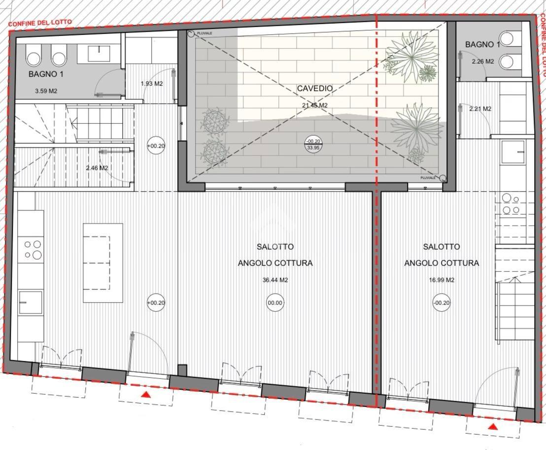 Anche il Bilocale può essere realizzato su due livelli con al piano terra il soggiorno con l'angolo cottura e bagno mentre al secondo piano la camera ed il bagno.