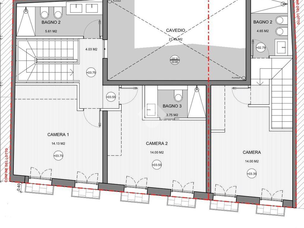 Il Trilocale può essere realizzato su due livelli con al piano terra il soggiorno con l'angolo cottura e il bagno mentre al secondo piano le due camere ed il bagno.