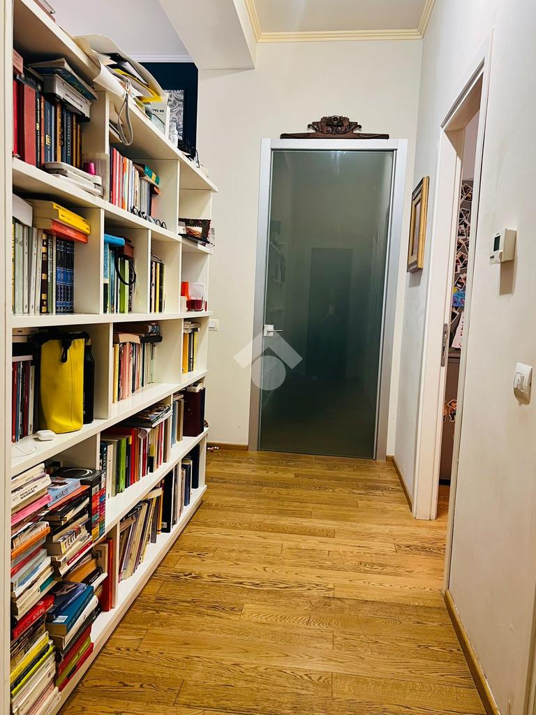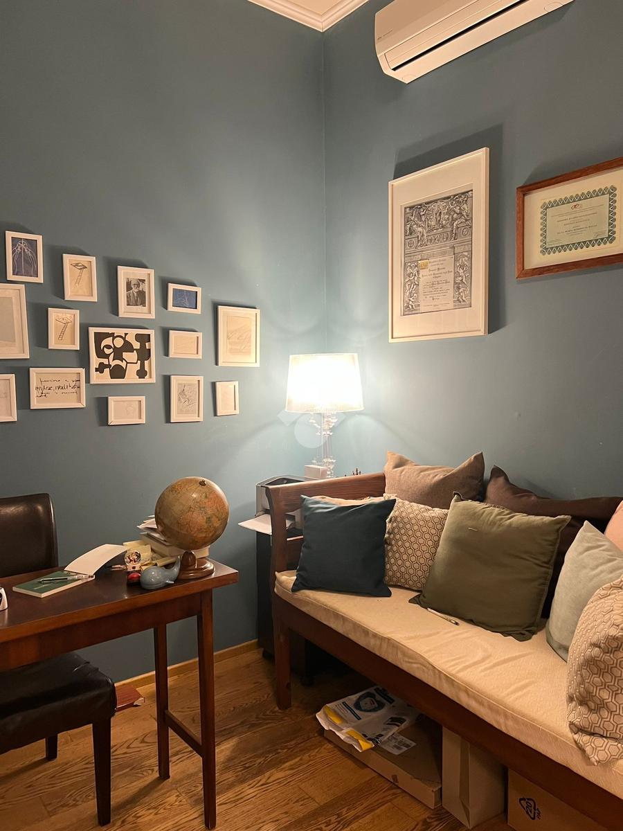 Dall'ingresso si accede al disimpegno e successivamente ad un comodo e riservato studio utilizzabile anche come camera. Dal disimpegno all'ingresso si accede sia ad un bagno utilizzabile anche esclusivamente per lo studio e successivamente al soggiorno. Completano l'immobile due comode camere, la cucina, il bagno, il servizio, un ripostiglio e due balconi.